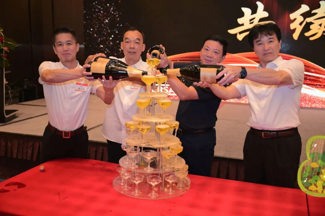流淌的香檳象征著財(cái)富源源不斷,香檳塔象征著事業(yè)蒸蒸日上。20周年,又是一個(gè)新的起點(diǎn),SS店的代表和PTC一起注滿香檳塔,祝福全體SS店與PTC,在未來(lái)攜手共贏,共續(xù)輝煌。